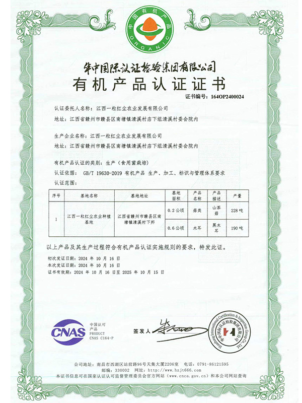 有機產(chǎn)品認(rèn)證證書